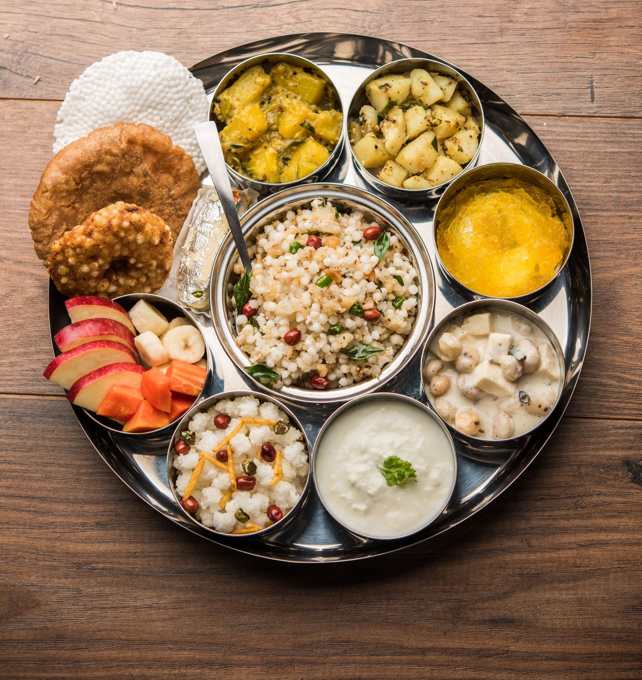 Amid the Himalayan peaks, The Westin Resort & Spa, Himalayas, offers a fasting-friendly thali that blends festive flavours with wellness, celebrating sattvik “vrat ka khana” in its purest form. The menu includes Seasonal Fruit Salad, Kuttu or Singhara Puri/Pakode, Sabudana Khichdi/Vada, and Kheer — dishes crafted to be light, pure, and spiritually uplifting.