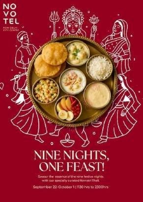 To honour the season, Novotel presents a Navratri thali crafted with authentic sattvik ingredients. Highlights include Singadey ke Pakode, Kuttu ke Aate ki Puri, Sabudana Khichdi, Chironji ki Kheer, and Lauki ka Halwa traditional dishes prepared for both those fasting and those celebrating the flavours, harmonising with the city’s radiant festive cadence.